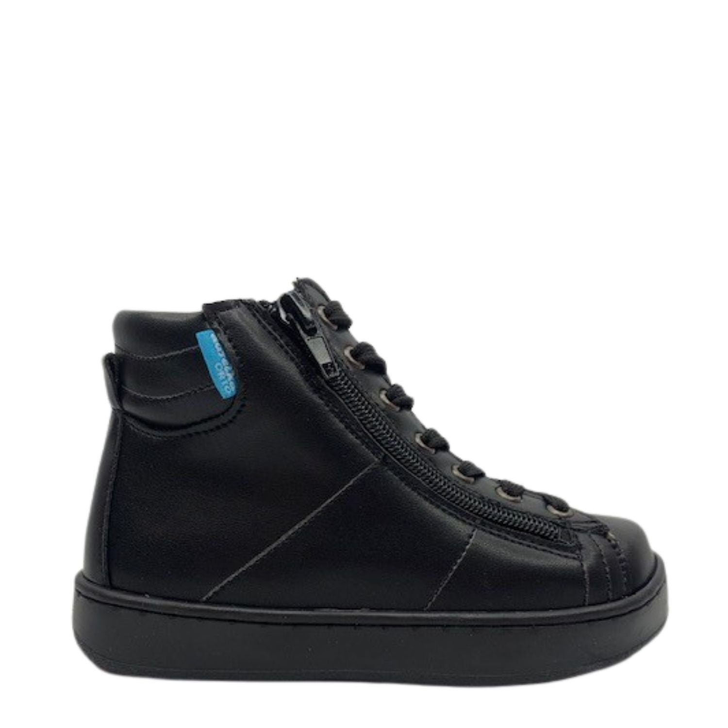 The Aurelka 1075 Ephyna orthopedic sneakers deliver exceptional ankle support and all-day comfort for active children. These premium black high-top sneakers for kids are expertly designed to protect and stabilize developing feet during sports and daily activities. The innovative dual-zipper system combined with traditional lace closure ensures quick, hassle-free wear, while the advanced ankle support technology helps prevent childhood foot injuries and promotes healthy foot development. Built with a durable white platform sole and elegant suede detailing, these children's orthopedic shoes seamlessly blend performance with style. Perfect for active kids who need reliable foot protection, these high-top sneakers with ankle support are the ideal choice for parents prioritizing both comfort and foot health in their children's athletic footwear.