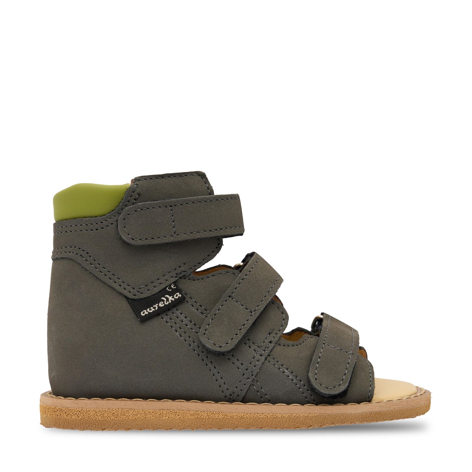 The AurelkaORTO Cygnet 1003 LE25 is a specialist narrow-fit orthopaedic sandal designed for toddlers and young children with very slim feet who are beginning to stand, step, and take their first independent movements. Part of the Footwear for Stability collection, this high-ankle sandal offers a balanced combination of softness, structure, and featherweight stability—ideal for early mobility development where proper ankle alignment and secure foot positioning are essential.