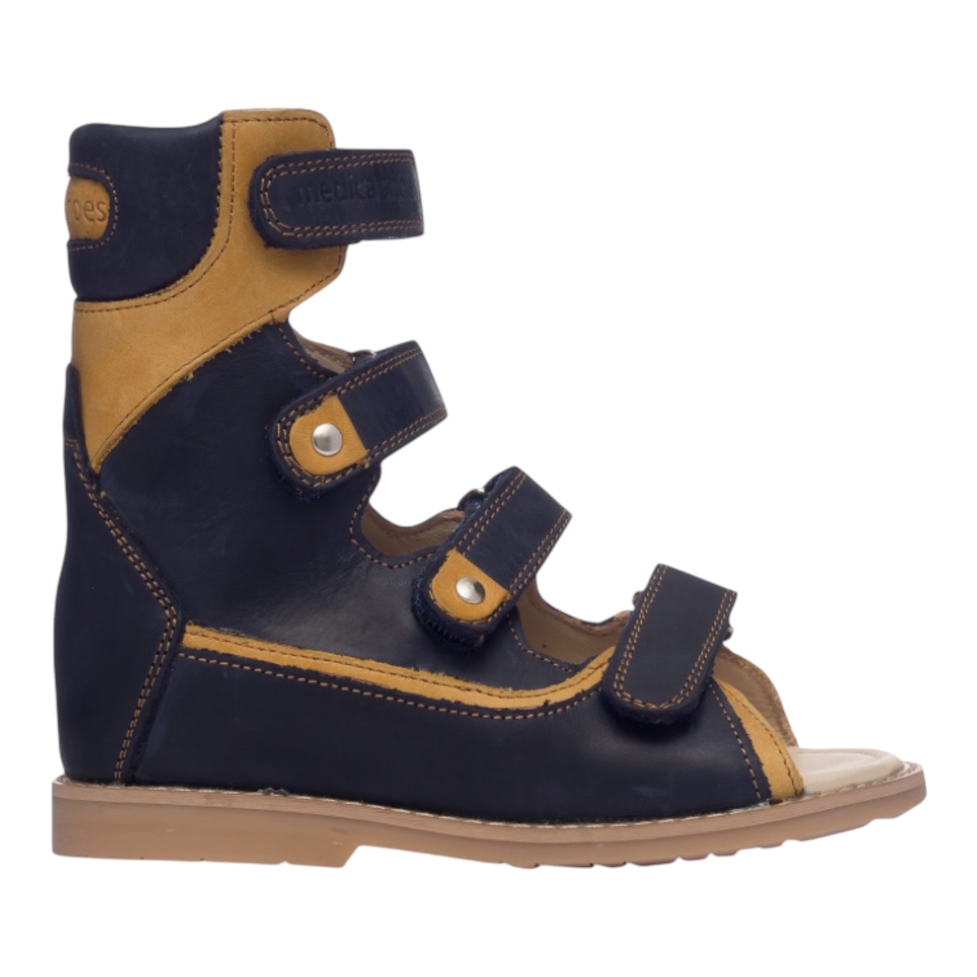 The Medica Brisbane is a specialized sandal in the AFO alternative orthopaedic footwear collection, tailored for children needing extra support for the lower leg, ankle, and foot. Similar in function to an ankle foot orthosis (AFO), it aids in controlling lower leg, ankle, and foot motion. The Brisbane model features an extended height stiffener for enhanced ankle and lower calf support, 4 convenient velcro straps for easy fitting, a Thomas Heel for additional rearfoot support, and is manufactured from real waxed leather materials for durability and comfort. Ideal for children and teenagers in need of substantial ankle and leg support.