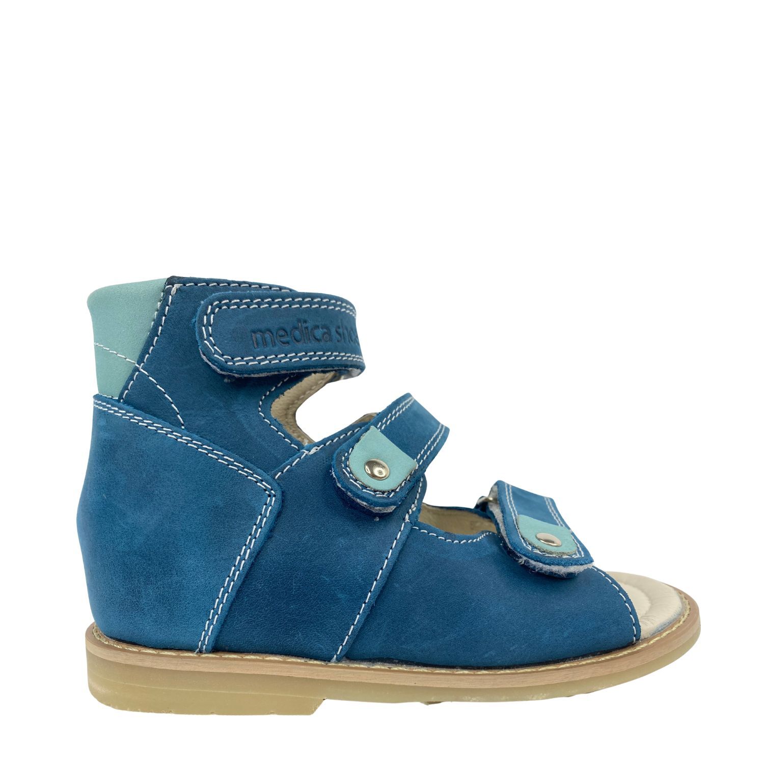 The Medica Tokyo sandal is designed for stability, with a focus on orthopaedic support, especially beneficial for children in need of extra ankle stability. It features an extended high stiffener for enhanced ankle support, a Thomas Heel for additional rearfoot support, and is crafted from real leather, ensuring durability and resilience. These sandals are ideal for children who require dependable ankle support and increased mobility, especially during the sunny summer season.